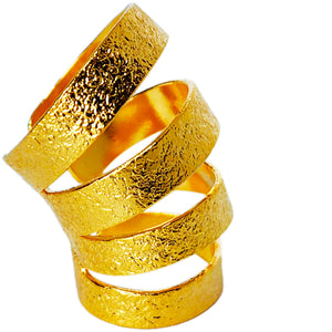 Evoca la fuerza y elegancia de los árboles de nuestra tierra. Su diseño en capas texturizadas con baño de oro 24k, representa las capas de la corteza resiliente de un árbol ancestral colombiano, aportando profundidad y carácter a tu look.